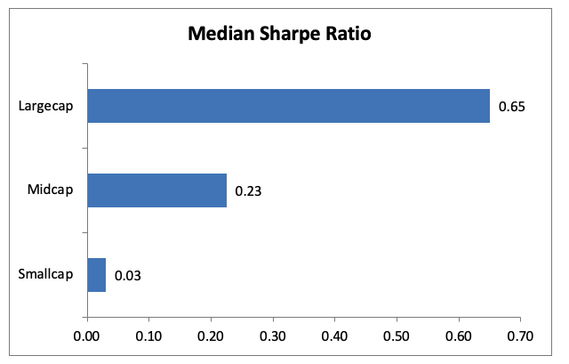 In fact, for every unit of risk taken, small cap have poorly rewarded its investors in terms of absolute growth rates as compared to that of mid-cap or large cap funds (see table). A high Sharpe ratio implies a better reward (in terms of return) for the unit of risk taken.